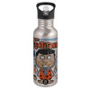 The flintstones, Water bottle Silver with straw, stainless steel 600ml