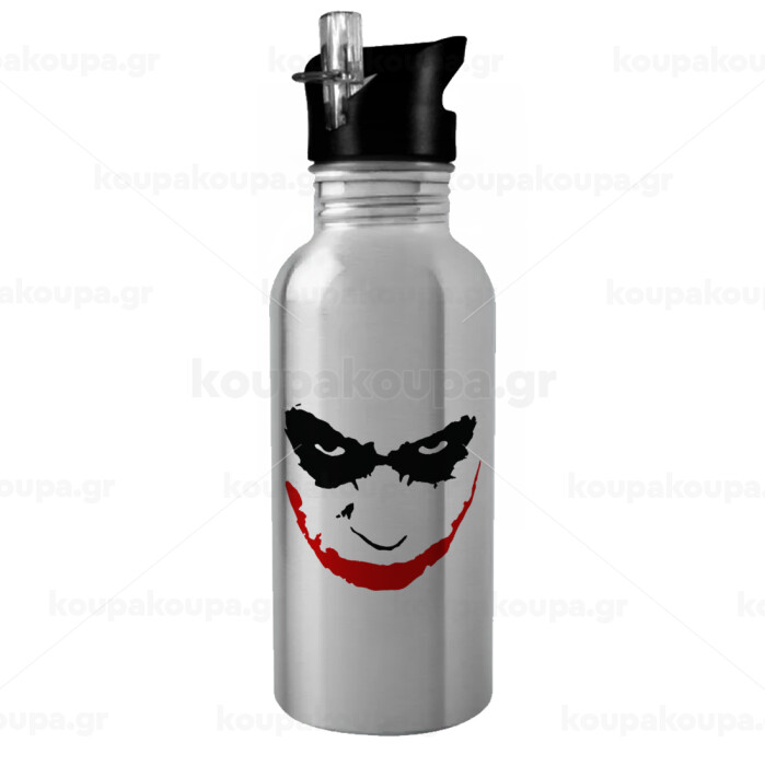The joker smile, Water bottle Silver with straw, stainless steel 600ml