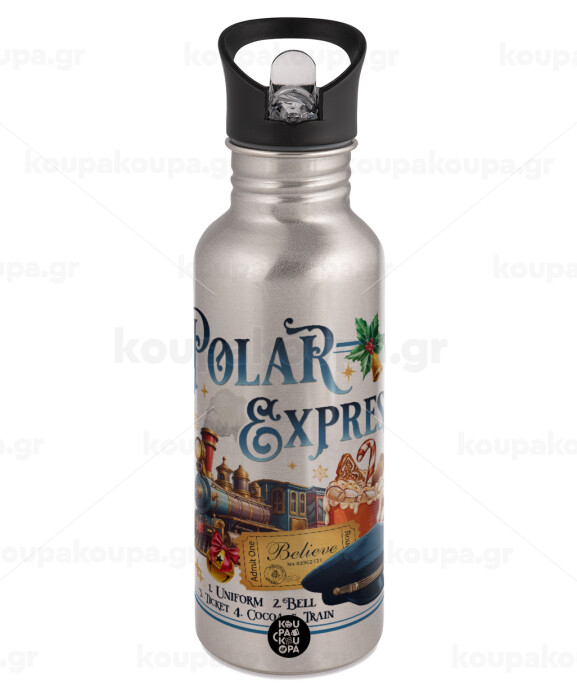 The Polar Express, Water bottle Silver with straw, stainless steel 600ml