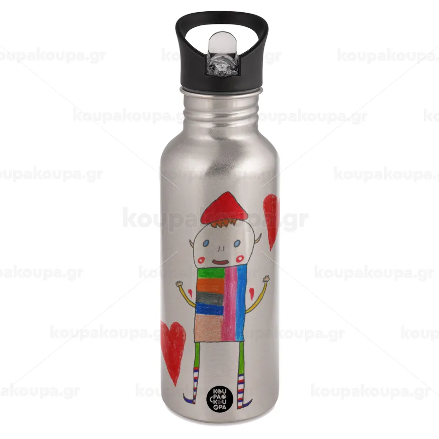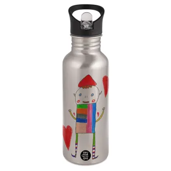 Ο Αλέξανδρος ζωγραφίζει την Αγάπη, Water bottle Silver with straw, stainless steel 600ml