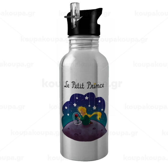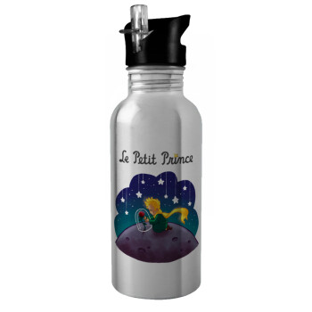 Little prince, Water bottle Silver with straw, stainless steel 600ml