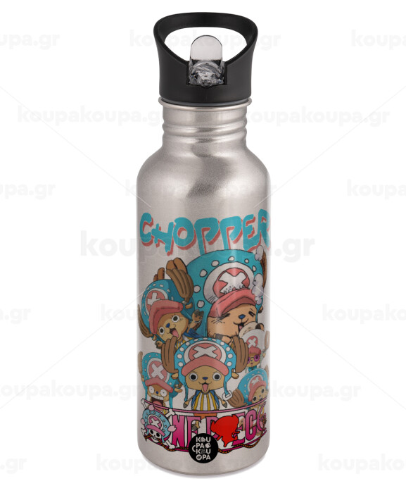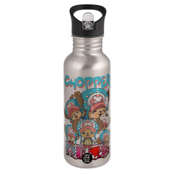 Chopper One Piece, Water bottle Silver with straw, stainless steel 600ml