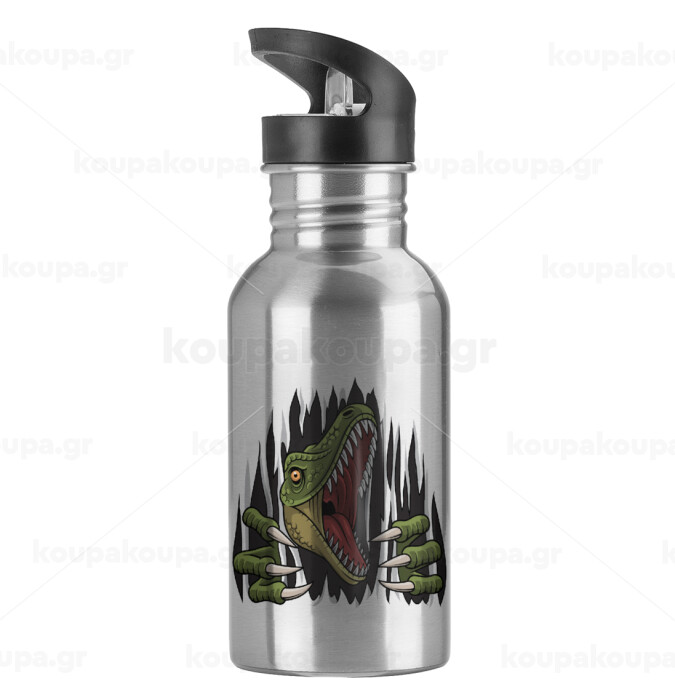 Dinosaur scratch, Water bottle Silver with straw, stainless steel 600ml