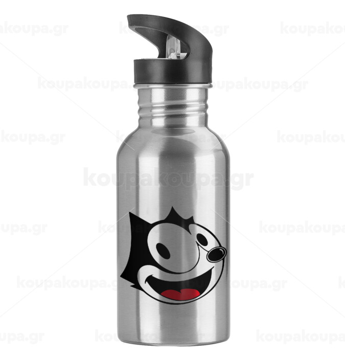 Felix the cat, Water bottle Silver with straw, stainless steel 600ml