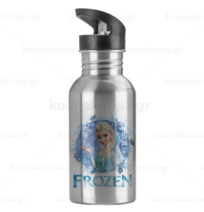 Frozen Elsa, Water bottle Silver with straw, stainless steel 600ml