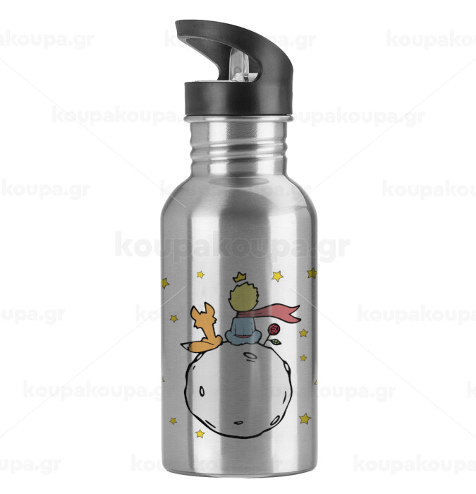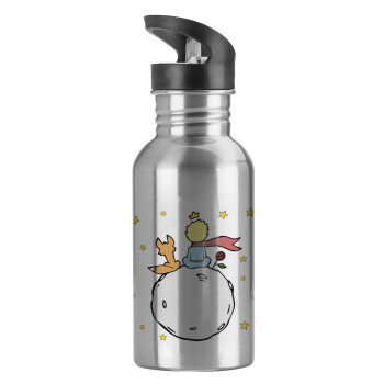 Little prince, Water bottle Silver with straw, stainless steel 600ml