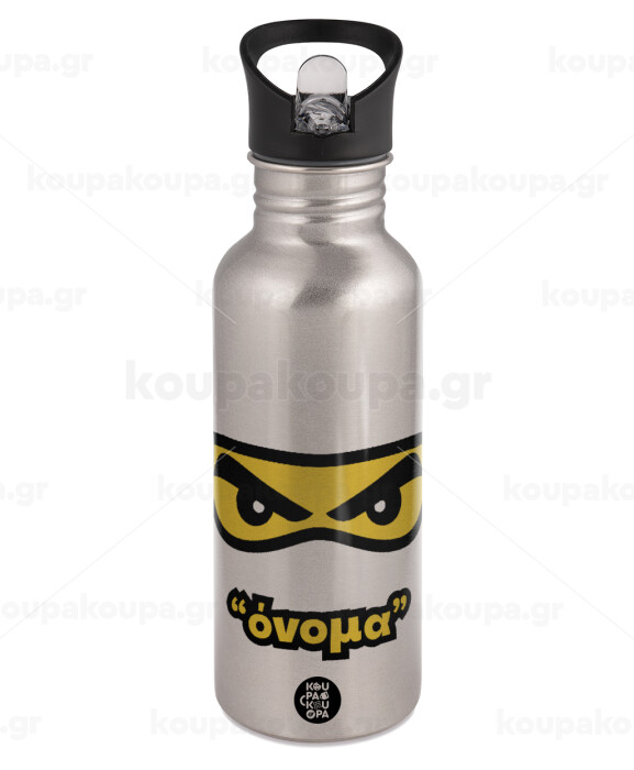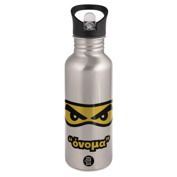 Ninja Eyes με όνομα, Water bottle Silver with straw, stainless steel 600ml