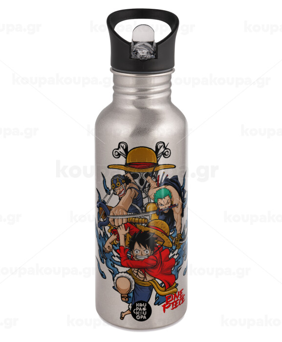 One Piece, Water bottle Silver with straw, stainless steel 600ml