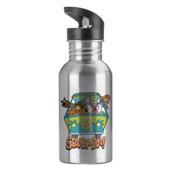 Scooby Doo car, Water bottle Silver with straw, stainless steel 600ml