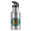 Scooby Doo, Water bottle Silver with straw, stainless steel 600ml