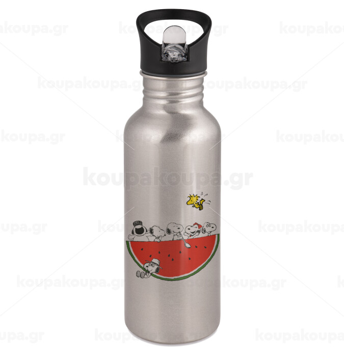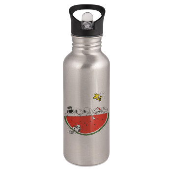 Snoopy summer, Water bottle Silver with straw, stainless steel 600ml