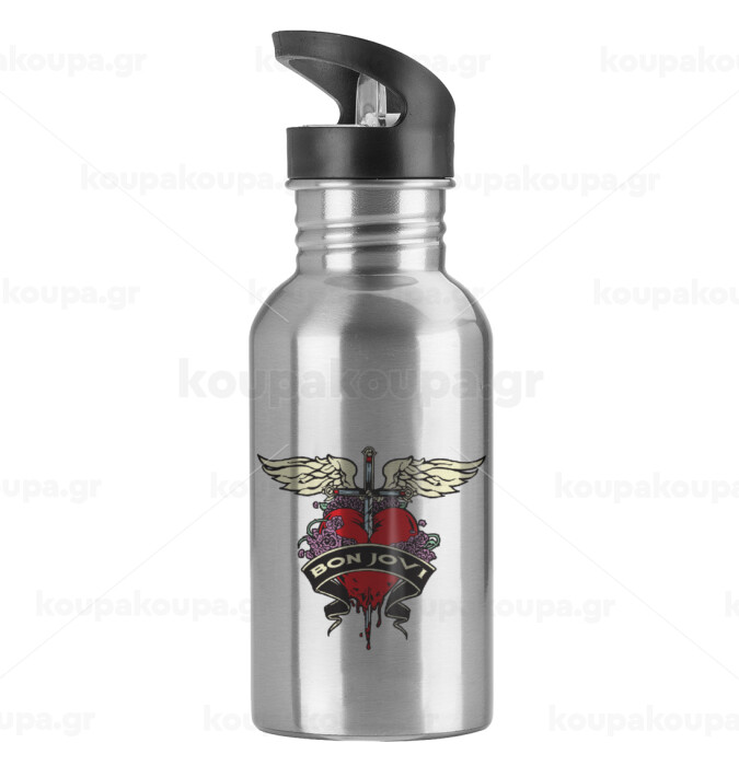 Bon Jovi, Water bottle Silver with straw, stainless steel 600ml