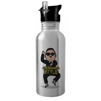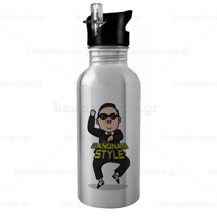 PSY - GANGNAM STYLE, Water bottle Silver with straw, stainless steel 600ml