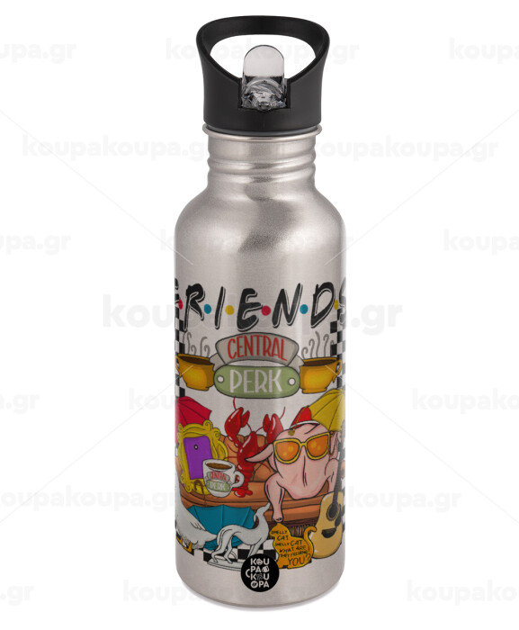 Friends, Water bottle Silver with straw, stainless steel 600ml