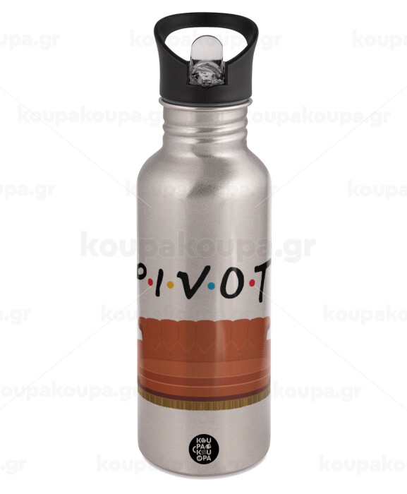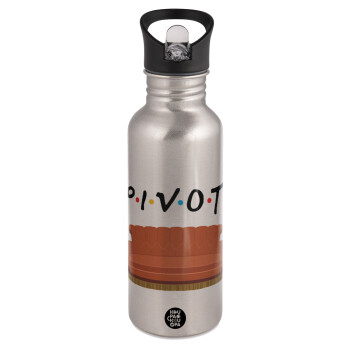 Friends Pivot, Water bottle Silver with straw, stainless steel 600ml