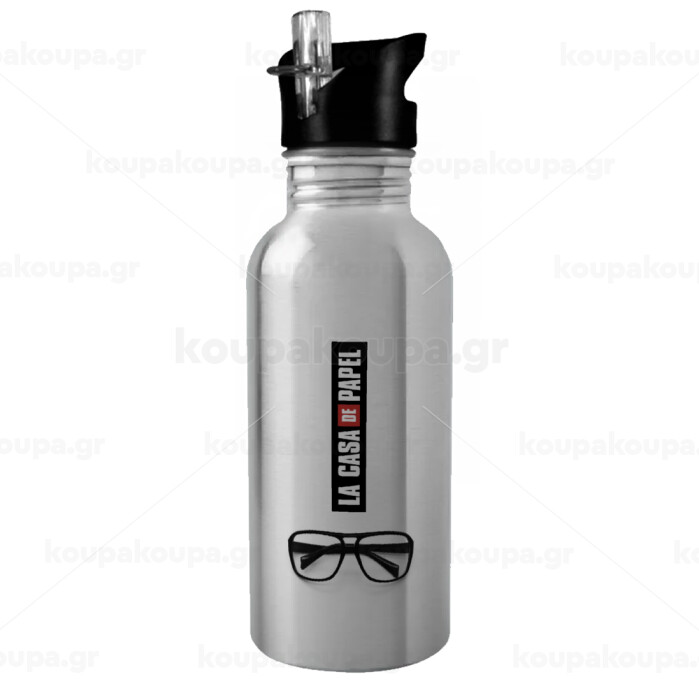 la professor, γυαλιά, Water bottle Silver with straw, stainless steel 600ml
