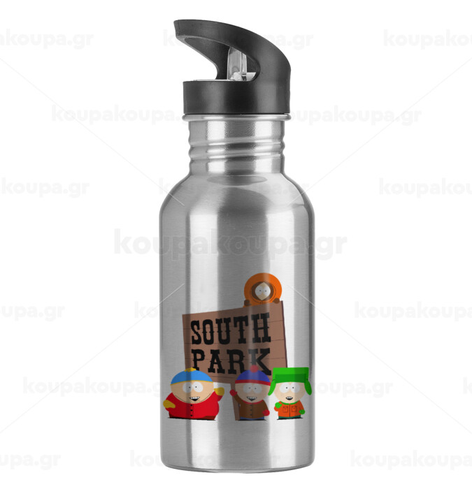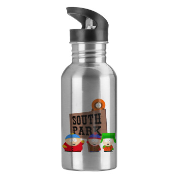 South Park, Water bottle Silver with straw, stainless steel 600ml