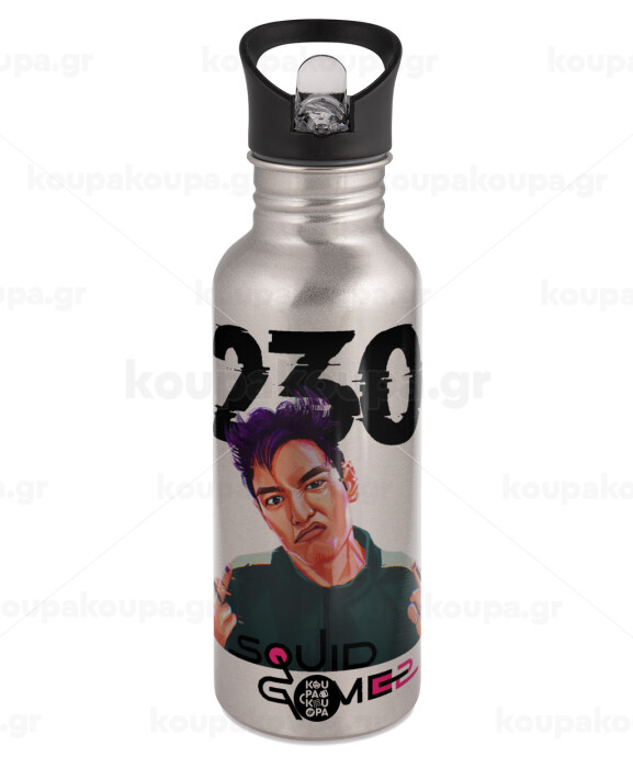 Squid game 2, Thanos 230, Water bottle Silver with straw, stainless steel 600ml