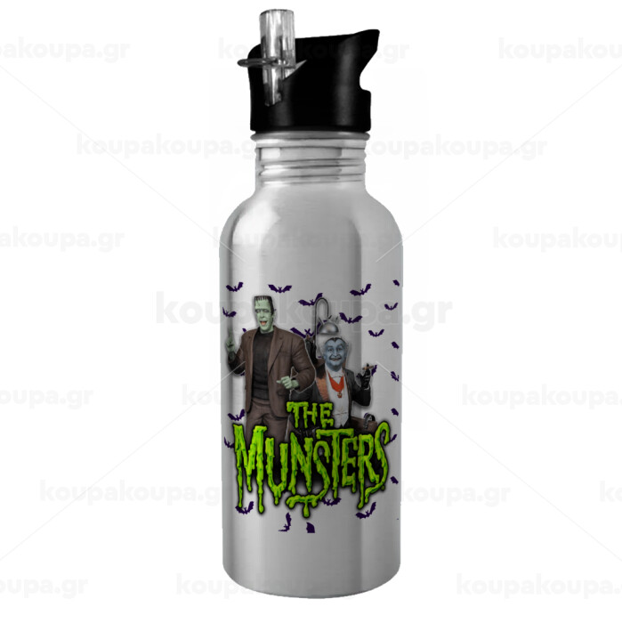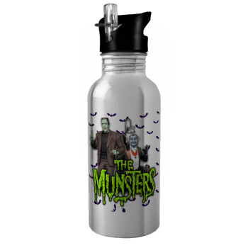 The munsters, Water bottle Silver with straw, stainless steel 600ml