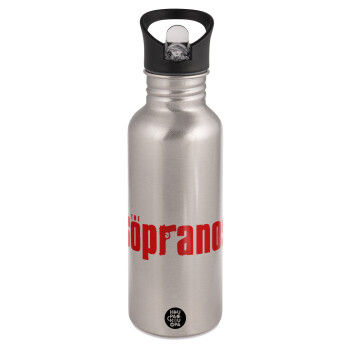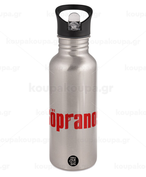 The Sopranos, Water bottle Silver with straw, stainless steel 600ml