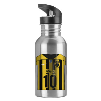 ΑΕΚ εμφάνιση, Water bottle Silver with straw, stainless steel 600ml