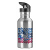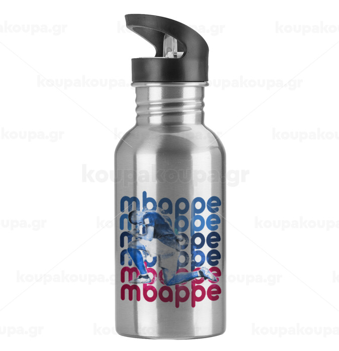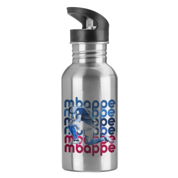 Kylian Mbappé, Water bottle Silver with straw, stainless steel 600ml