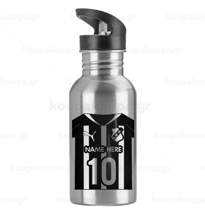 ΟΦΗ εμφάνιση, Water bottle Silver with straw, stainless steel 600ml