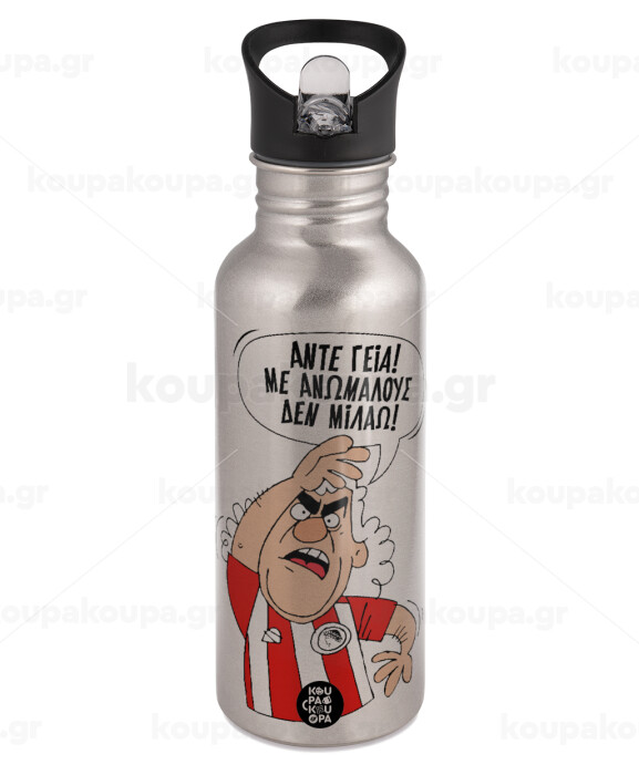 Τάκης, Άντε γεια, με ανώμαλους δεν μιλάω!, Water bottle Silver with straw, stainless steel 600ml