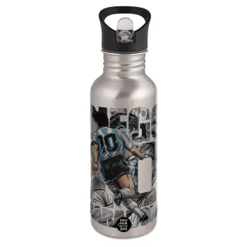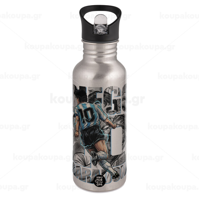 Diego Maradona (Ντιέγκο Μαραντόνα), Water bottle Silver with straw, stainless steel 600ml