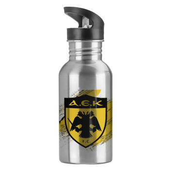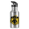 FC Α.Ε.Κ., Water bottle Silver with straw, stainless steel 600ml