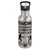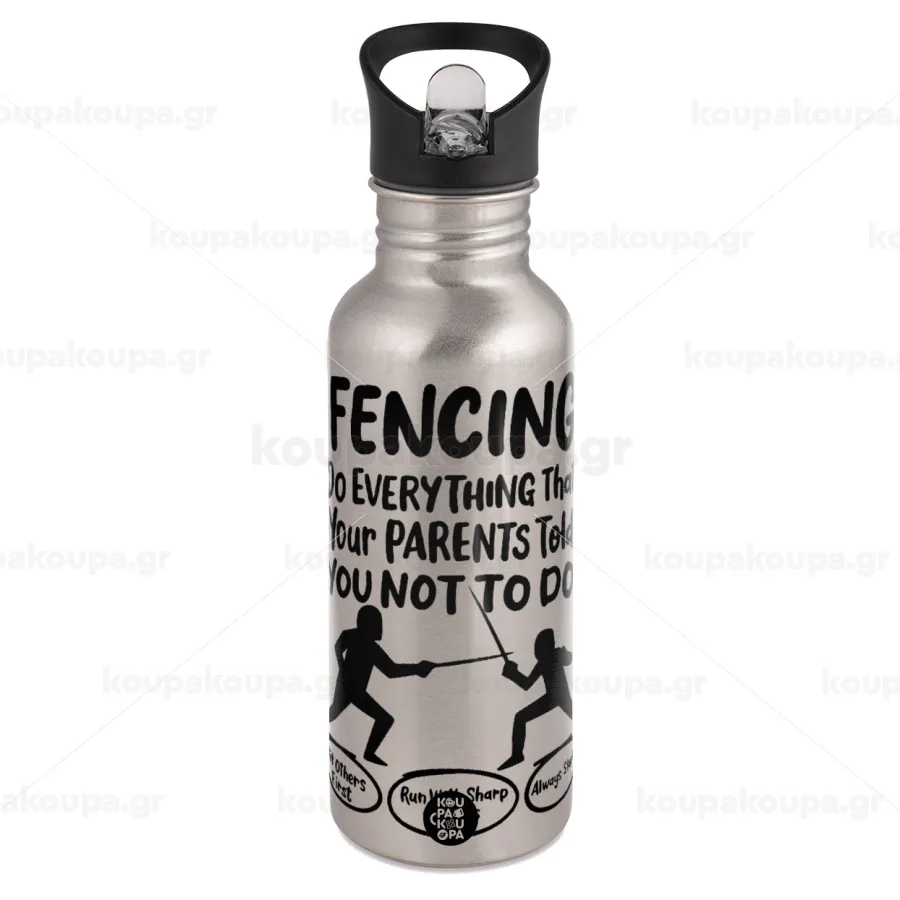 Fencing, do everything that your parents told you not to do., Water bottle Silver with straw, stainless steel 600ml