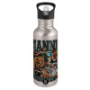 Giannis Antetokounmpo, Water bottle Silver with straw, stainless steel 600ml