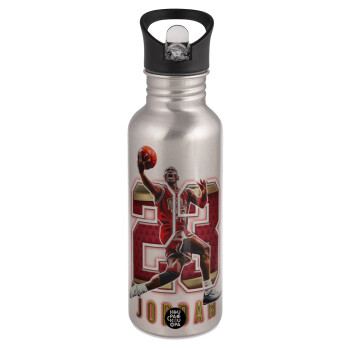 Jordan 23, Water bottle Silver with straw, stainless steel 600ml