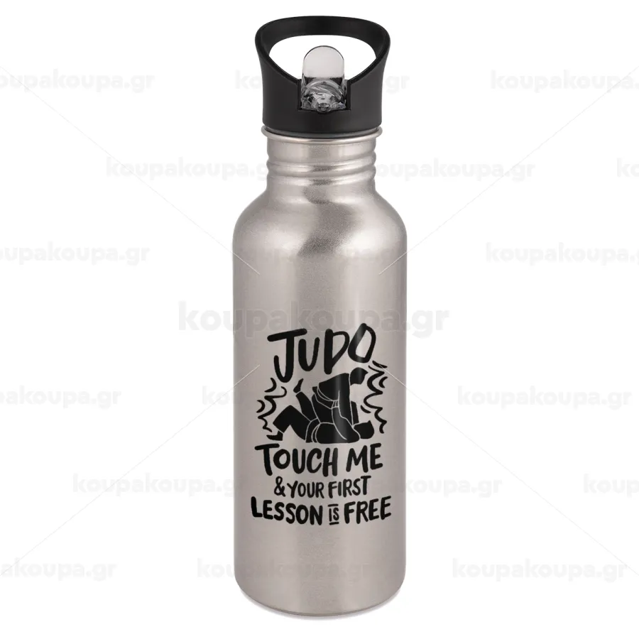 Judo Touch Me And Your First Lesson Is Free, Water bottle Silver with straw, stainless steel 600ml