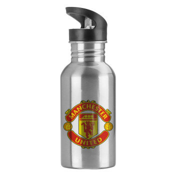 Manchester United F.C., Water bottle Silver with straw, stainless steel 600ml