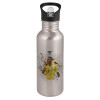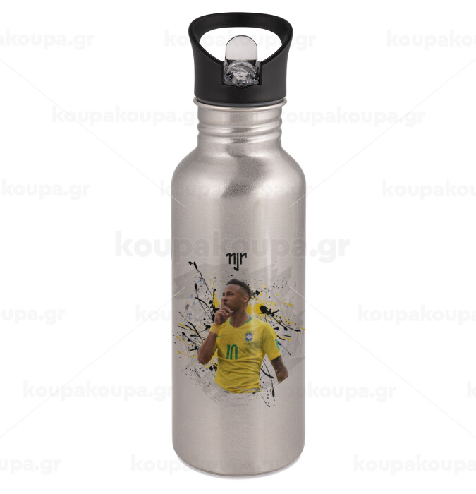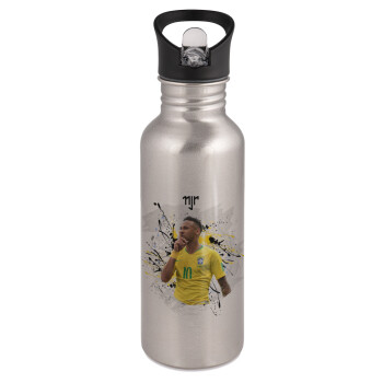 Neymar JR, Water bottle Silver with straw, stainless steel 600ml