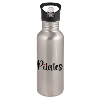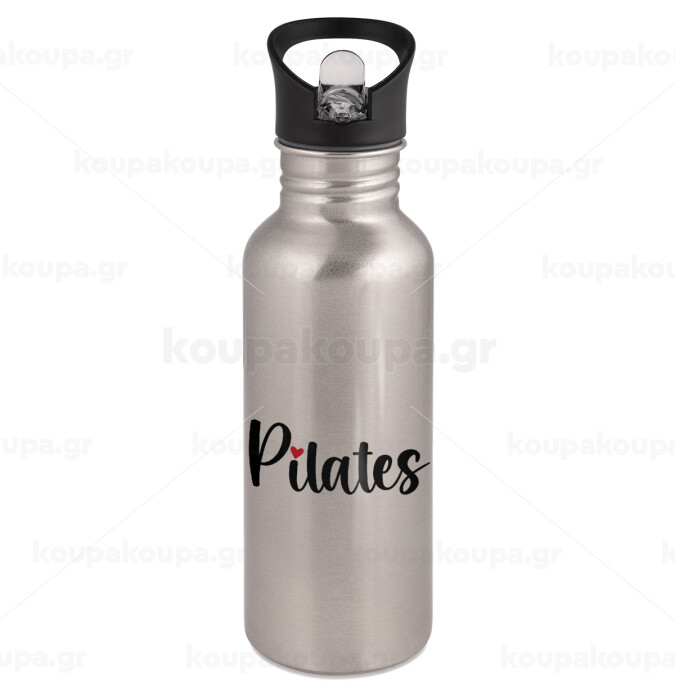Pilates love, Water bottle Silver with straw, stainless steel 600ml