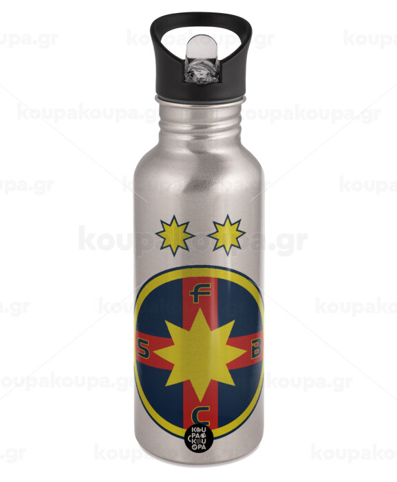 FC Steaua Bucuresti (FCSB), Water bottle Silver with straw, stainless steel 600ml