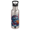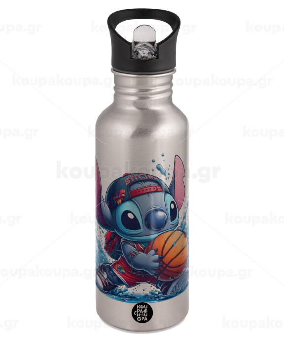 Stitch Basketball, Water bottle Silver with straw, stainless steel 600ml