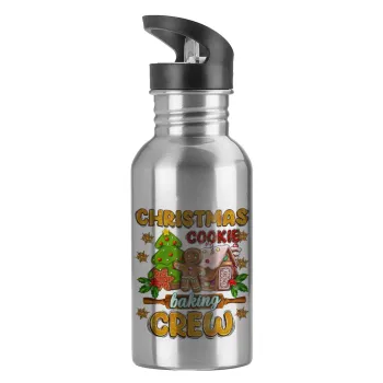 Christmas Cookie Baking Crew, Water bottle Silver with straw, stainless steel 600ml