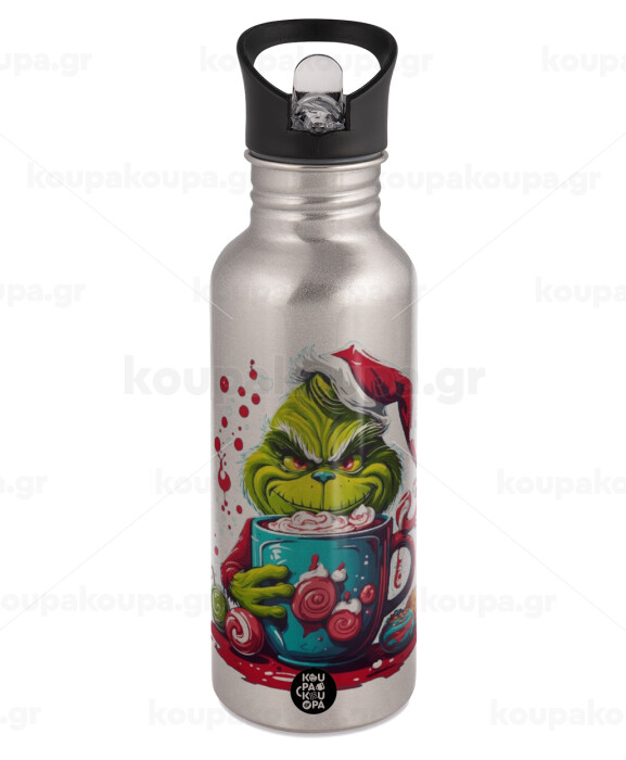 Giggling Grinchy Galore, Water bottle Silver with straw, stainless steel 600ml