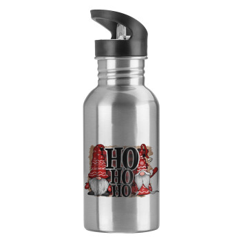 Ho ho ho, Water bottle Silver with straw, stainless steel 600ml