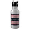 Merry Christmas Vintage, Water bottle Silver with straw, stainless steel 600ml
