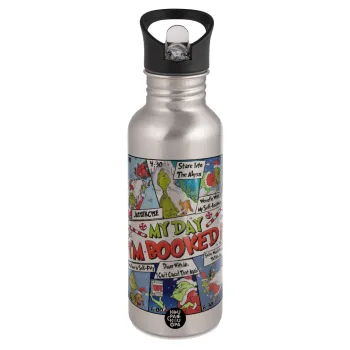 My Day Grinch, Water bottle Silver with straw, stainless steel 600ml