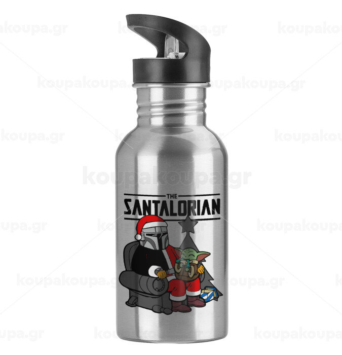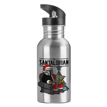 Star Wars Santalorian, Water bottle Silver with straw, stainless steel 600ml