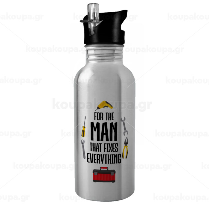 For the man that fixes everything!, Water bottle Silver with straw, stainless steel 600ml