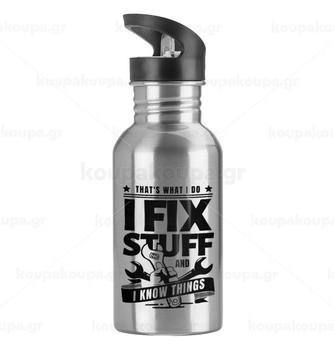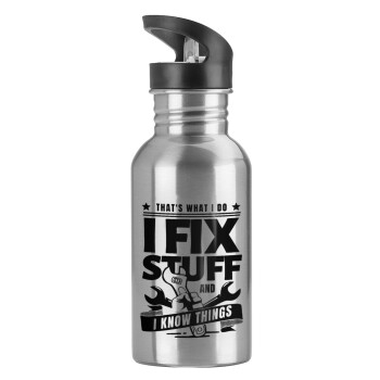 I fix stuff, Water bottle Silver with straw, stainless steel 600ml