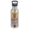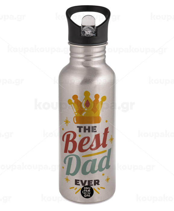 The Best DAD ever, Water bottle Silver with straw, stainless steel 600ml