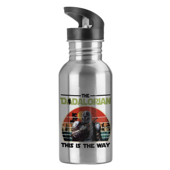 The Dadalorian, Water bottle Silver with straw, stainless steel 600ml