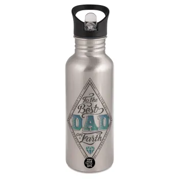 To the best DAD on earth, Water bottle Silver with straw, stainless steel 600ml